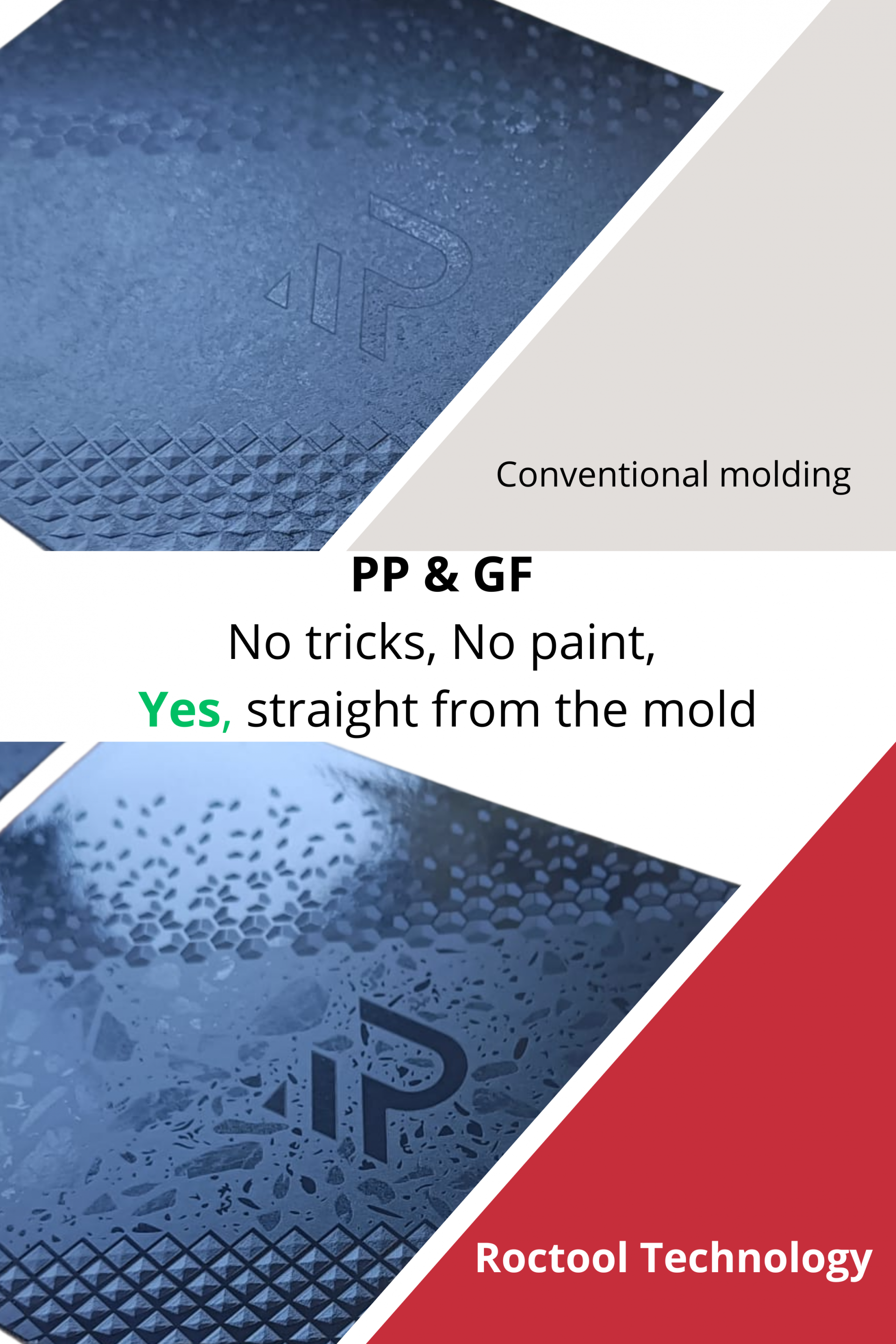 Conventional molding vs Roctool technology PP & GF